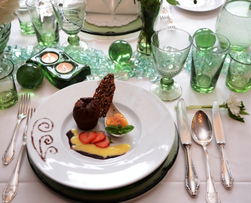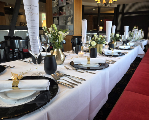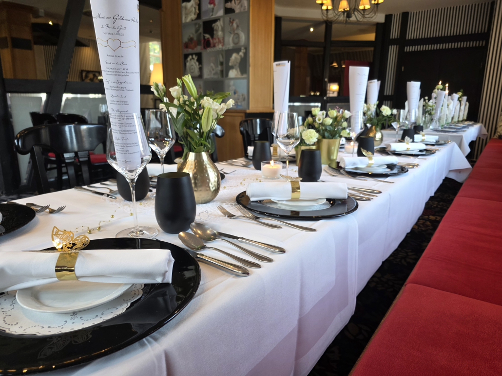 Von ausgewählten Menükarten und stilvoll drapierten Servietten über kunstvoll gestaltete Tischdekoration und prachtvolle Blumenarrangements bis hin zu ausgefallenden kulinarischen Affären und edelsten Weinen im Schieferhof ist Raum für all Ihre Wünsche.